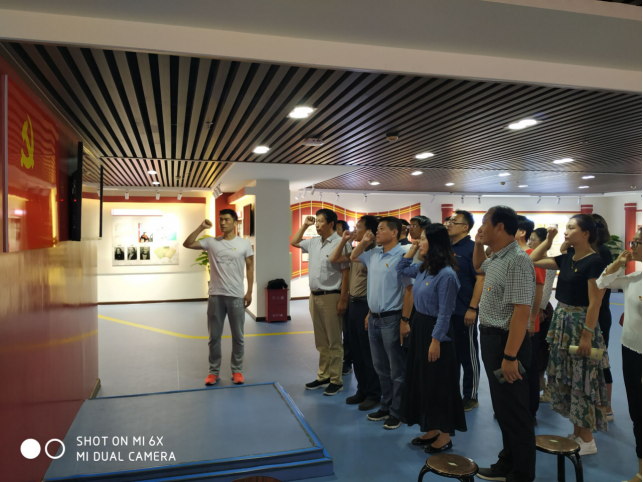 最后,在财务处宣传委员侯宪法的带领下,全体党员在鲜艳的党旗下,庄重地重温了入党誓词。活动结束后,大家表示,通过此次的活动,一定要珍惜今天的幸福生活,爱岗敬业,勤奋工作,不忘初心,牢记使命,努力在平凡的岗位上做出不平凡的成绩。