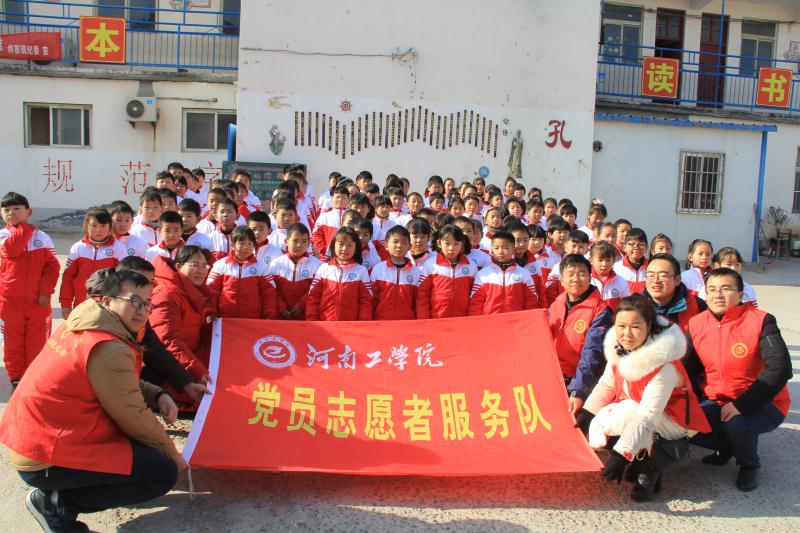 1月16日中午,机关党委财务资产党支部全体党员在支部书记李军辉同志的带领下,联合交通银行新乡分行党委一行来到原阳县师寨镇何庄小学开展“关爱留守儿童,情暖乡村小学’公益活动”,为这里的孩子送去了崭新的校服。