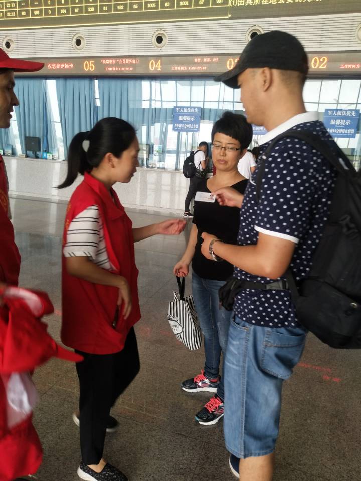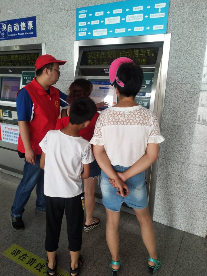 有了入党誓词的激励,党员们在活动中,热情地对乘客进行帮扶,购票大厅中,有指导使用自助购票的身影;进站口,有协助验证的身影;出站口,有指引乘坐公交的身影……。每一个朴实的身影背后,都是一次对誓言的重温。整个志愿者活动,从早上8点30开始,一直持续到了下午6点,志愿者们脚步是疲惫的,脸上的笑容却是灿烂的。