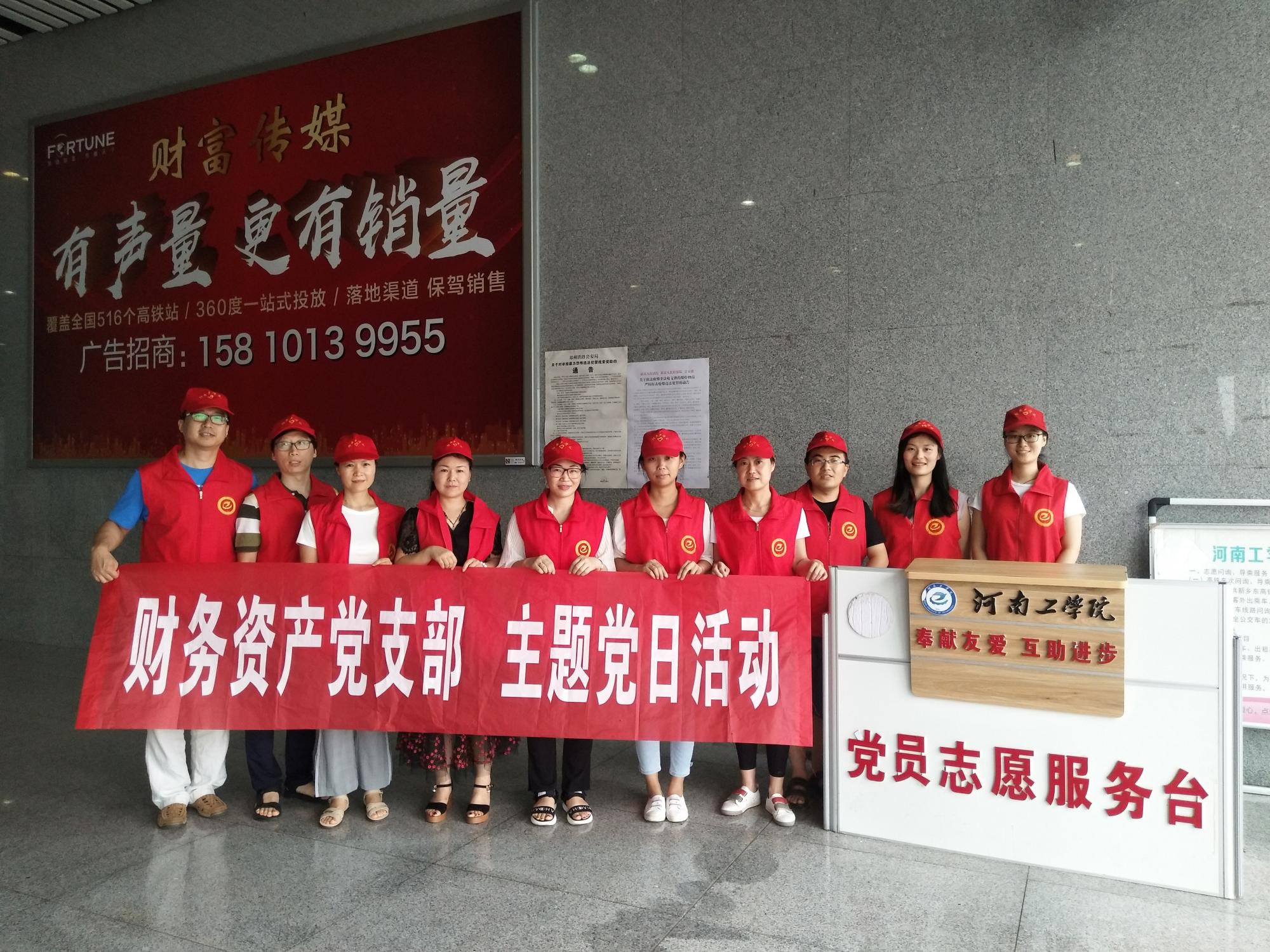 为庆祝中国共产党建党97周年,深入学习贯彻习近平新时代中国特色社会主义思想和党的十九大精神,落实学校组织部、机关党委“不忘初心、牢记使命”的主题教育,7月12日,财务资产党支部全体党员在支部书记李军辉同志的带领下,到高铁站开展志愿者服务。